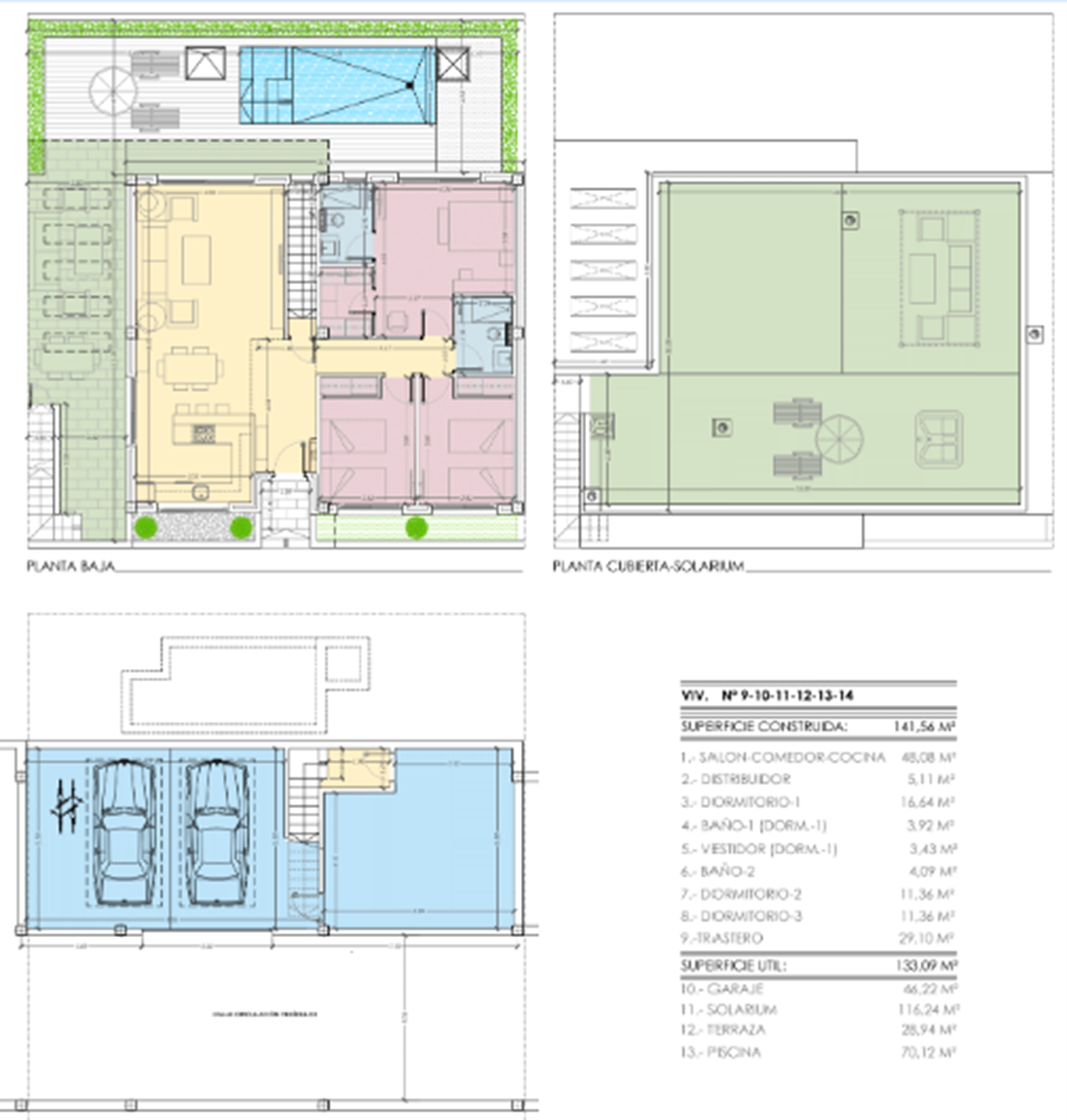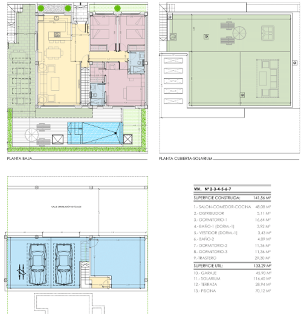 Dessutom ingår i varje bostad ett spektakulärt solarium på 116 m², perfekt för att njuta av solen och den fria utsikten, samt förråd på 30 m² och rymliga garage som ger extra bekvämlighet och förvaringsutrymme.